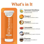 With Glutathione, Vitamin C, Vitamin E, Astaxanthin, Sodium, and Bioperine, this effervescent formula helps fight dullness, pigmentation, and oxidative stress, giving your skin a natural, luminous glow.